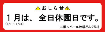 2026年1月1日~2026年1月31日は、休園日です。土日祝も休園ですのでご注意ください。