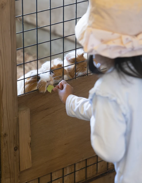 かわいい動物たちがエサを⾷べる様⼦を間近で⾒られ、