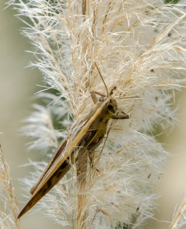 バッタやコオロギ、カマキリなど、秋の⾍たちが草原むらで活動しています。⾵の⾳や⾍の鳴き声を楽しみながら散策するのもおすすめです。