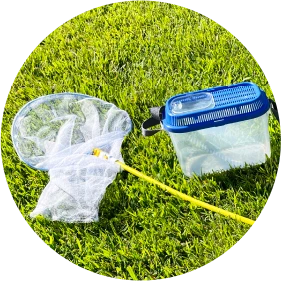 ⾍取り網や⾍かごを持参すると、捕まえた⾍をじっくり観察できます。観察が終わったら、必ず⾃然に返してあげてくださいね。⽔筒も忘れずにお持ちください。