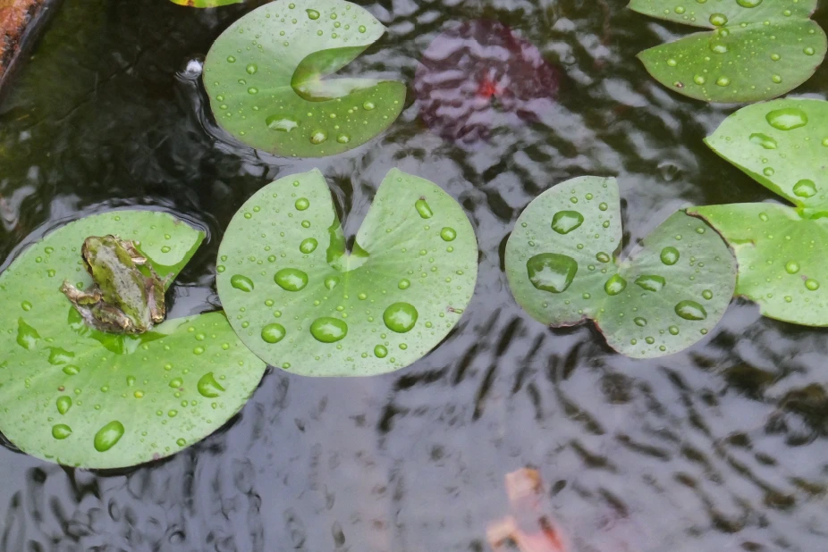⽔辺にはトンボやカエルなどの⽔辺の⽣き物も